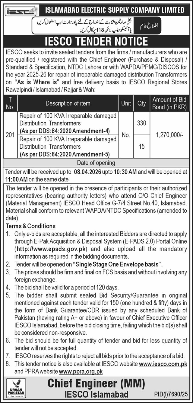 MM IESCO MM Tender Notice No. 201 08 Apr, 2026 11:00 AM N/A