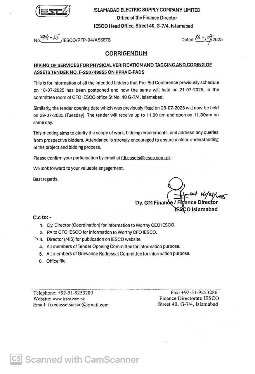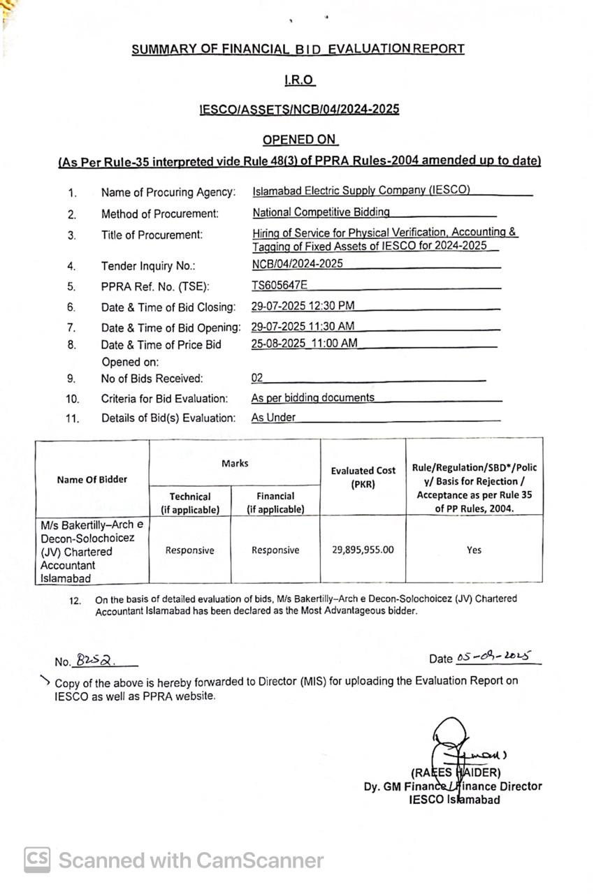 MM Evaluation Report for IESCO MM Tender Notice No. 31 04 Sep, 2025 14:00 PM