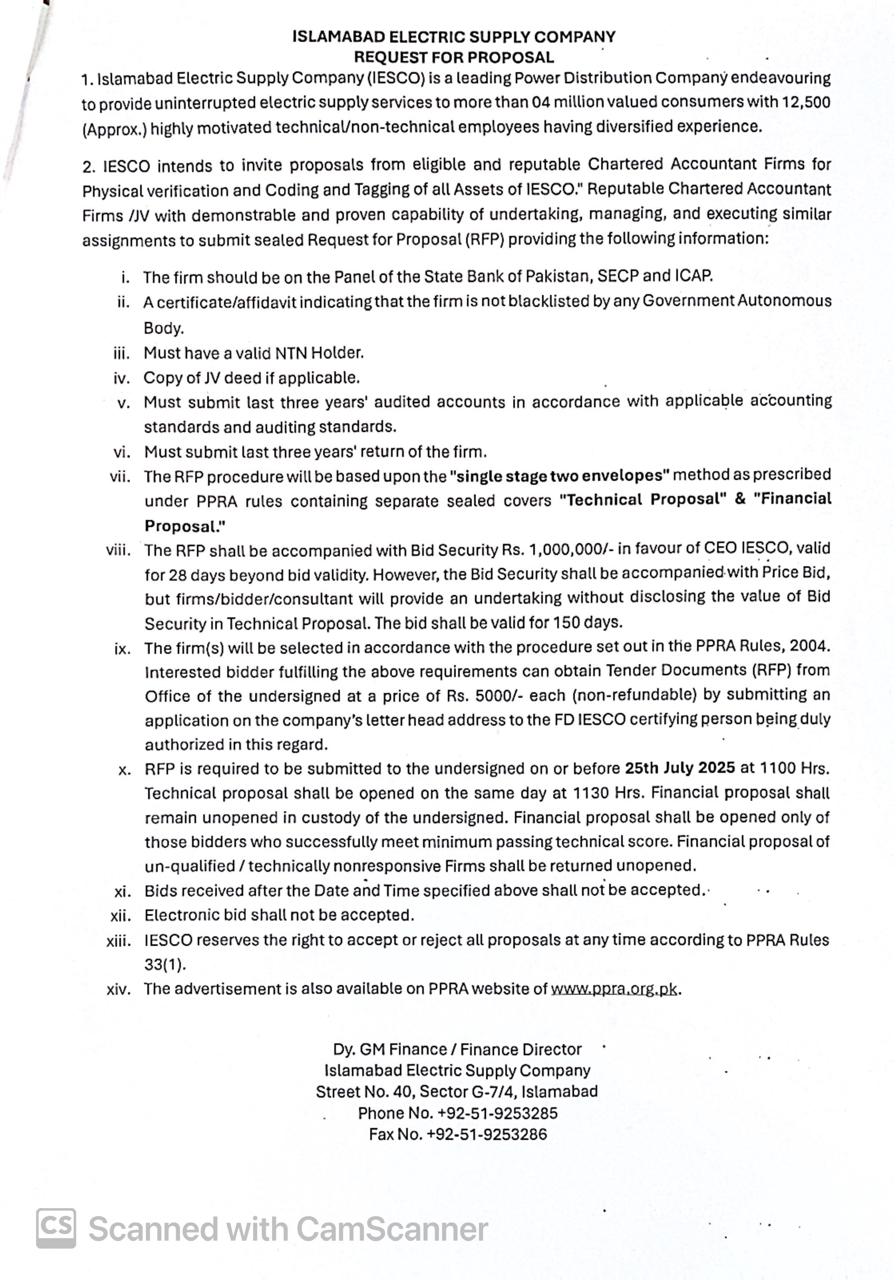 HR Price Bid Evaluation Report for IESCO HR Tender Notice RFP/HRM/04-2025 29 Aug, 2025 12:00 PM
