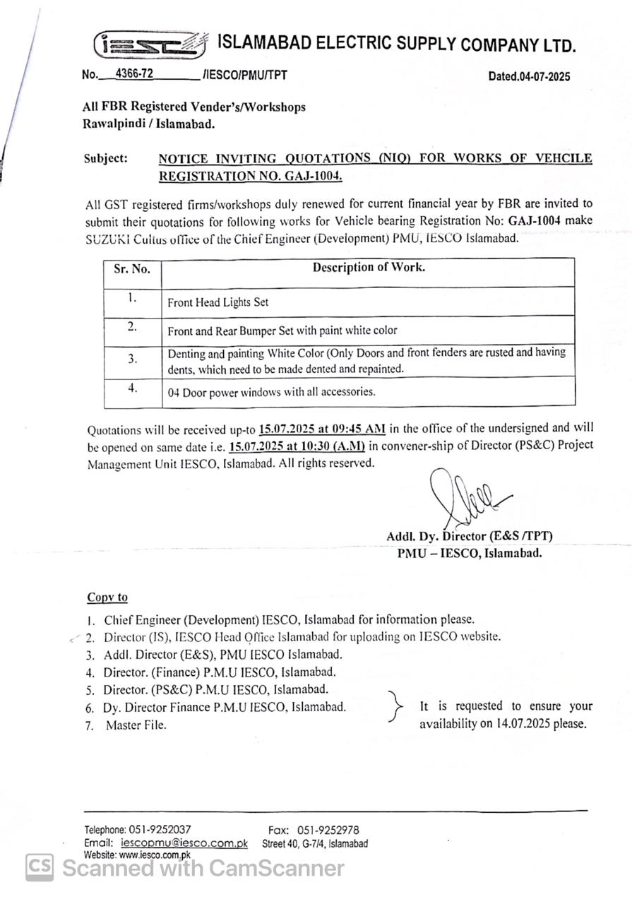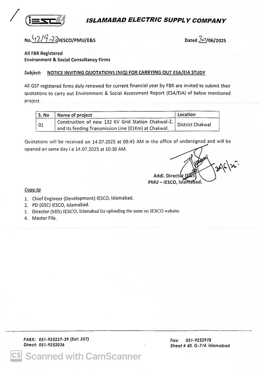 MM Evaluation Report for IESCO MM Tender Notice No. 51 04 Sep, 2025 14:00 PM